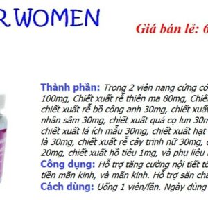 Công dụng: Phụ nữ trưởng thành muốn bổ sung Estrogen tự nhiên, cân bằng nội tiết tố, giảm triệu chứng liên quan đến tiền mãn kinh – mãn kinh, giảm stress